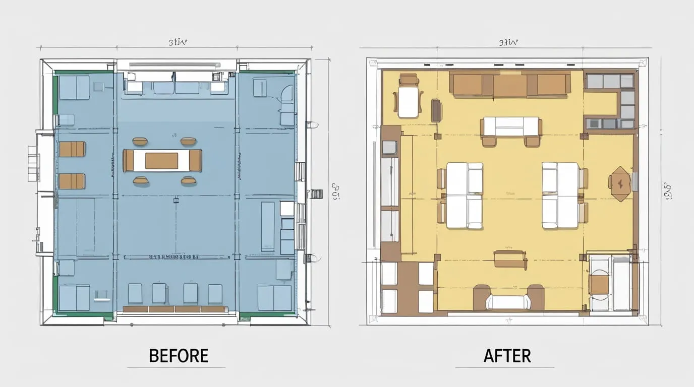 We upgrade old or inefficient spaces into modern, functional environments without unnecessary structural changes.